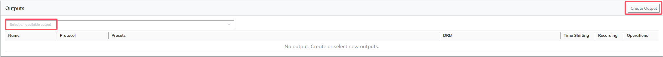 Click Create Output to configure media processing or select an existing media processing configuration.