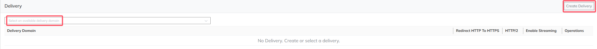 Click Create Delivery to configure content delivery or select an existing delivery configuration.