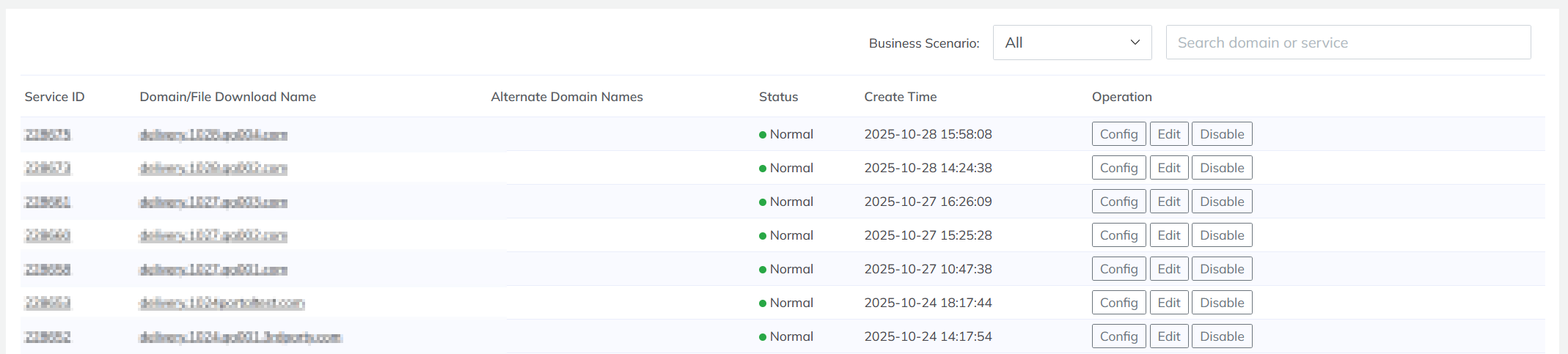 Manage delivery domains and configurations, including listing, querying, and modification.