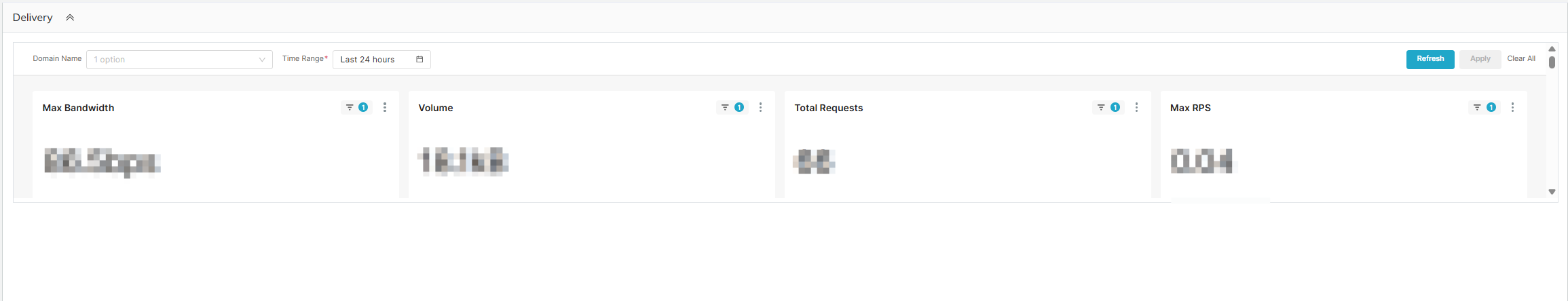 Delivery: Bandwidth, traffic, requests per second, request hit ratio, byte hit ratio, origin requests, and origin bandwidth